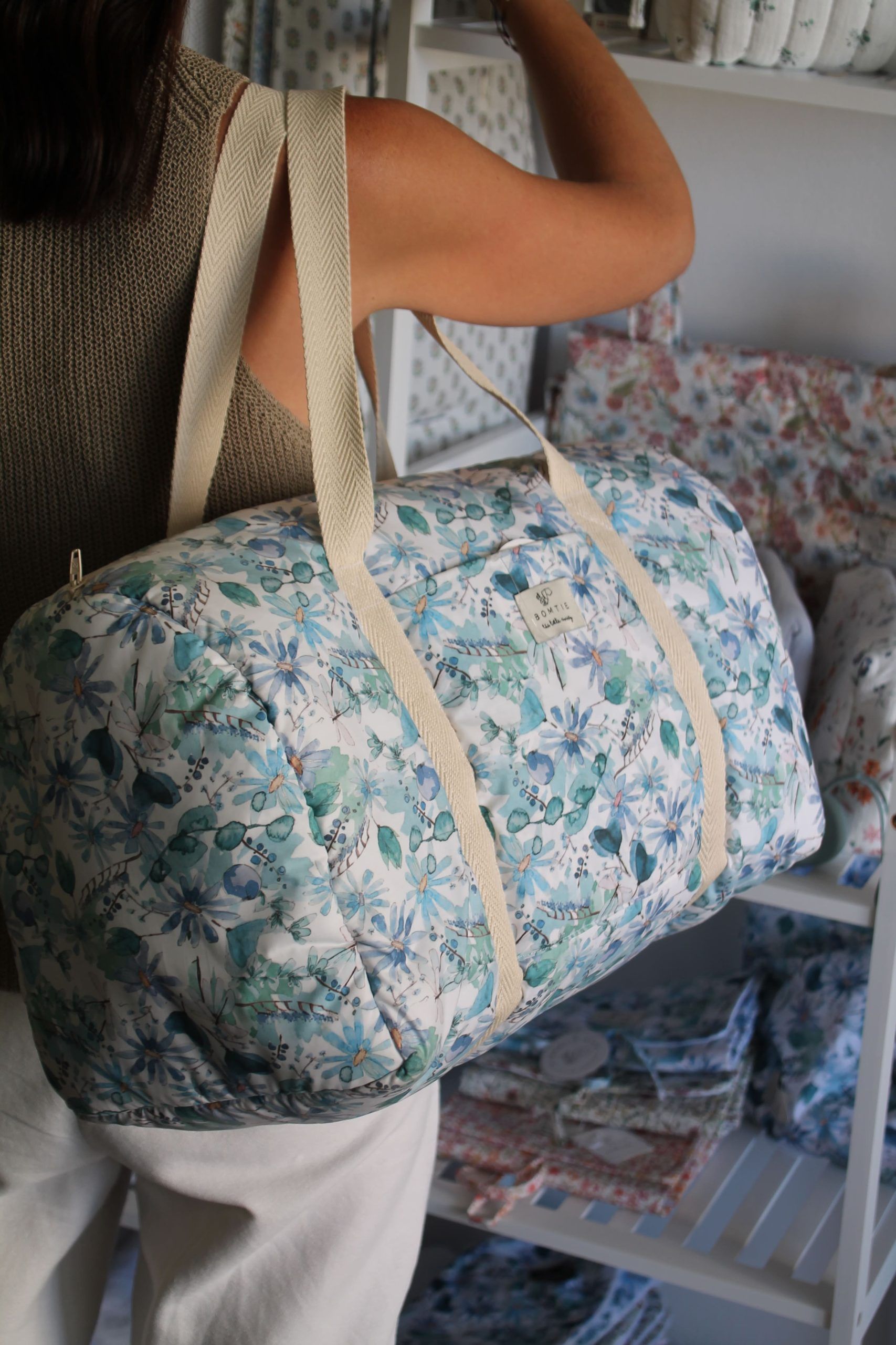 Nuestra bolsa de viaje es ideal para llevar lo imprescindible a una escapada de fin de semana. Pertenece a nuestra colección exclusiva Verbena , ahora con un acabado impermeabilizado que protege del agua y humedad.