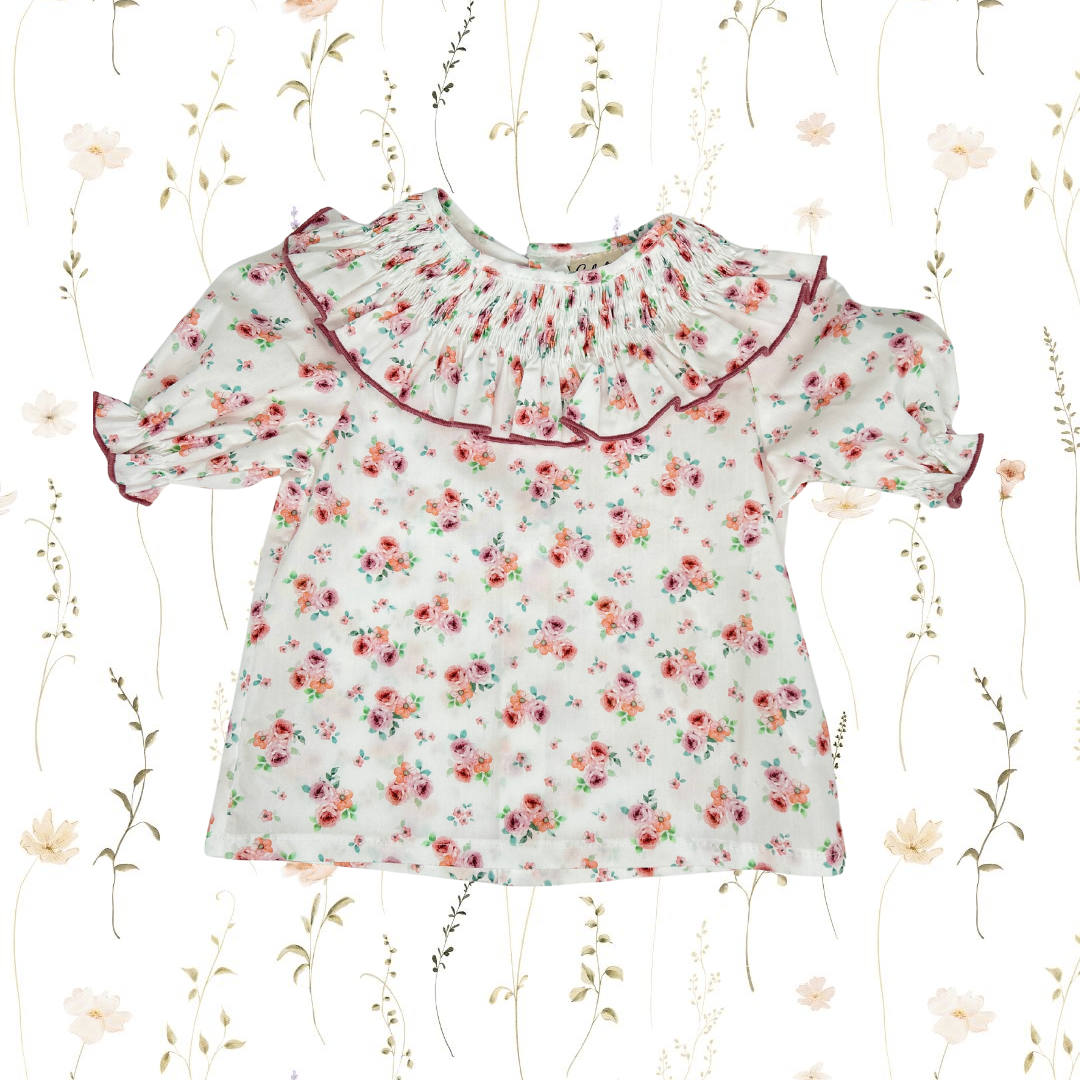La Camisa Frida, la tienes que tener en el armario de tu peque con cuello volante y manguita larga. Ideal para combinar con nuestros culetines.