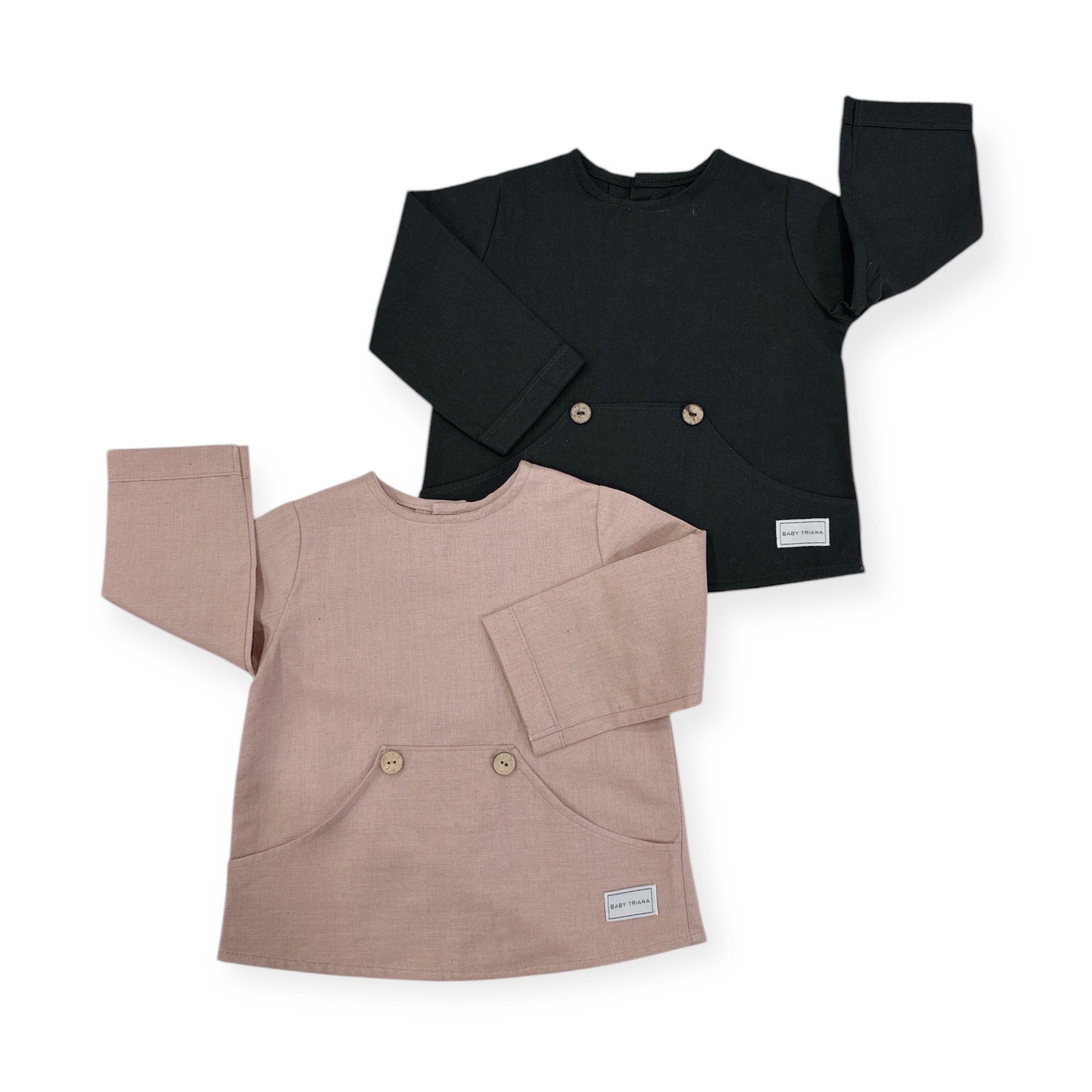 • Camisa cuello a la caja con bolsillo delantero y abotonada en espalda.
