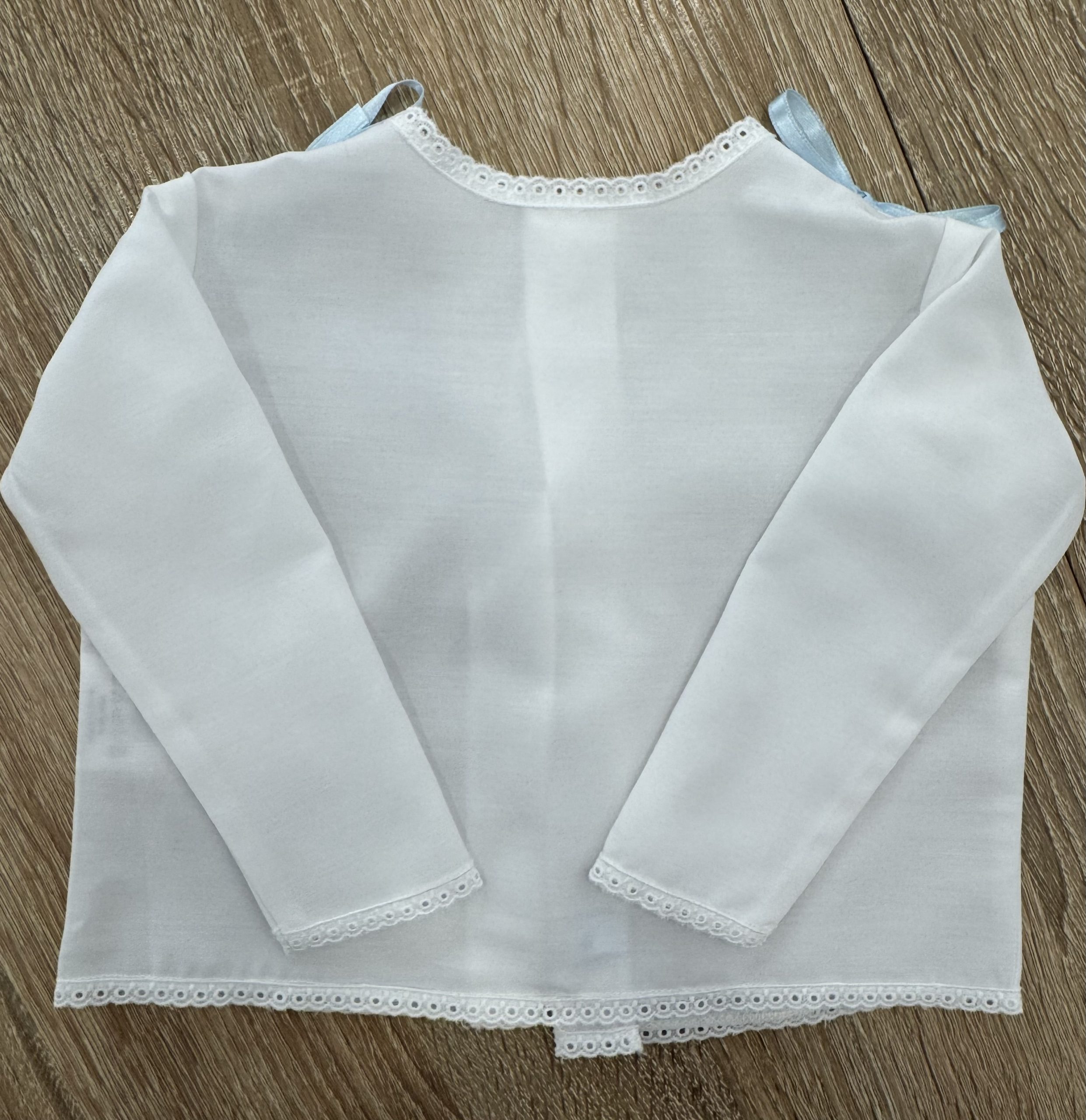 Las camisas están confeccionadas en algodón 100%. Tienen un botón atrás para abrocharlas.