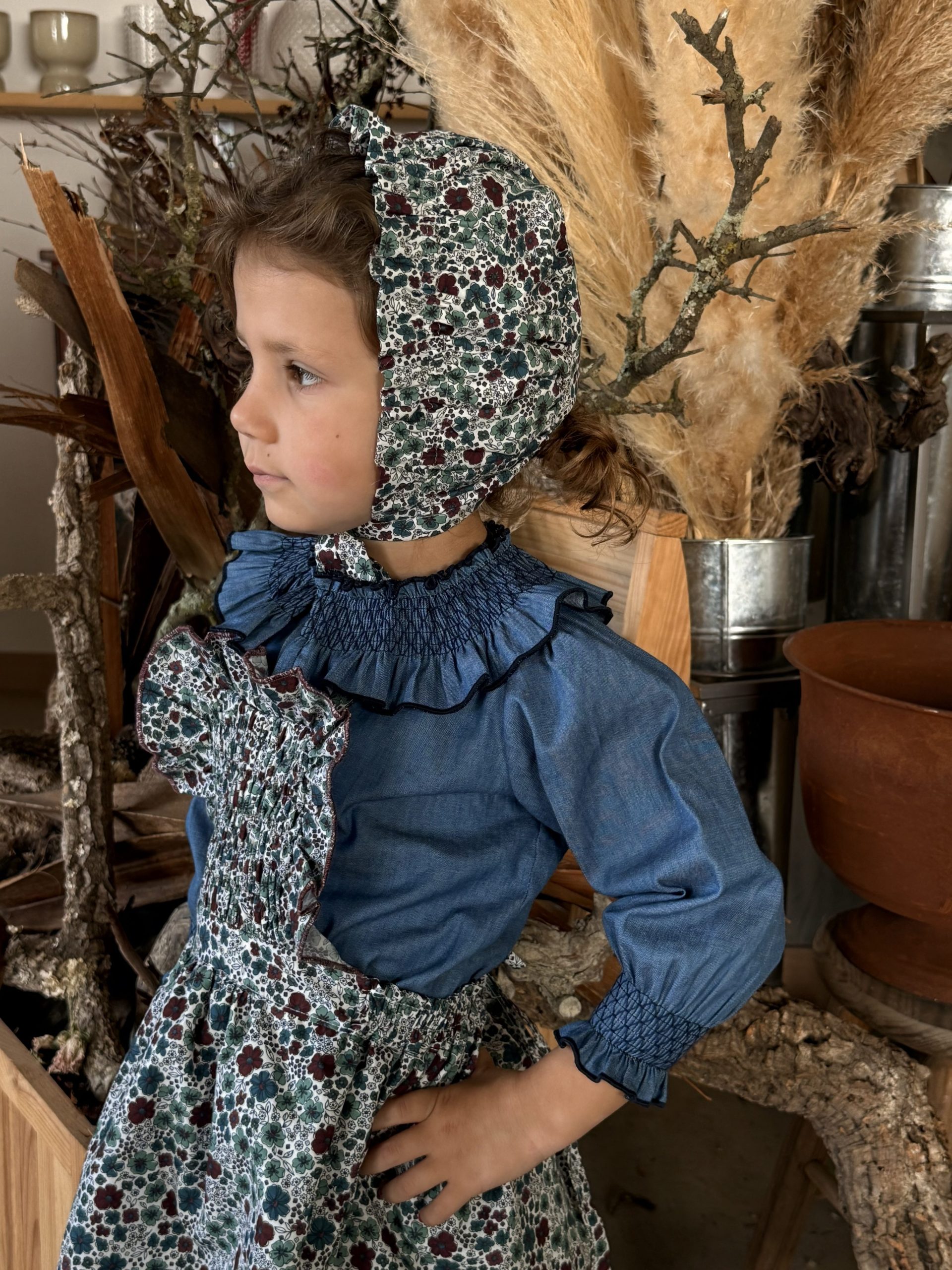 Capota con engomado en la parte delantera y lazada en mismo tejido, el engomado delantero permite adaptarse perfectamente al crecimiento.