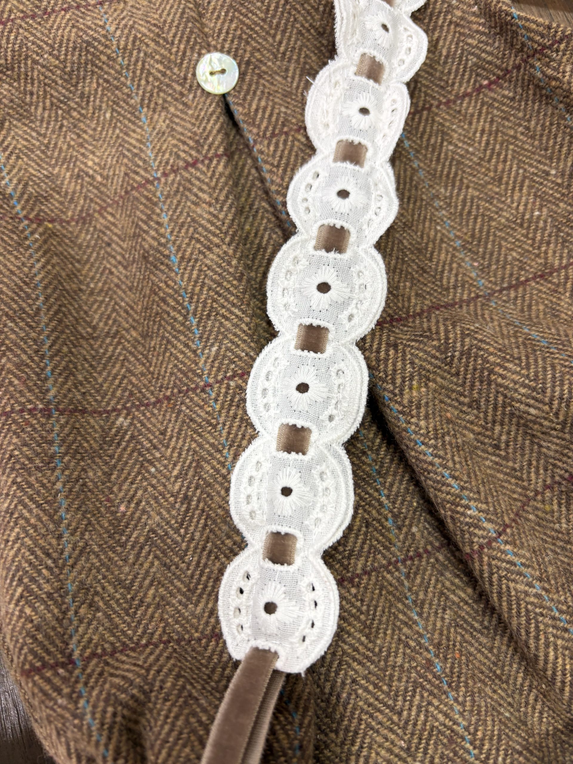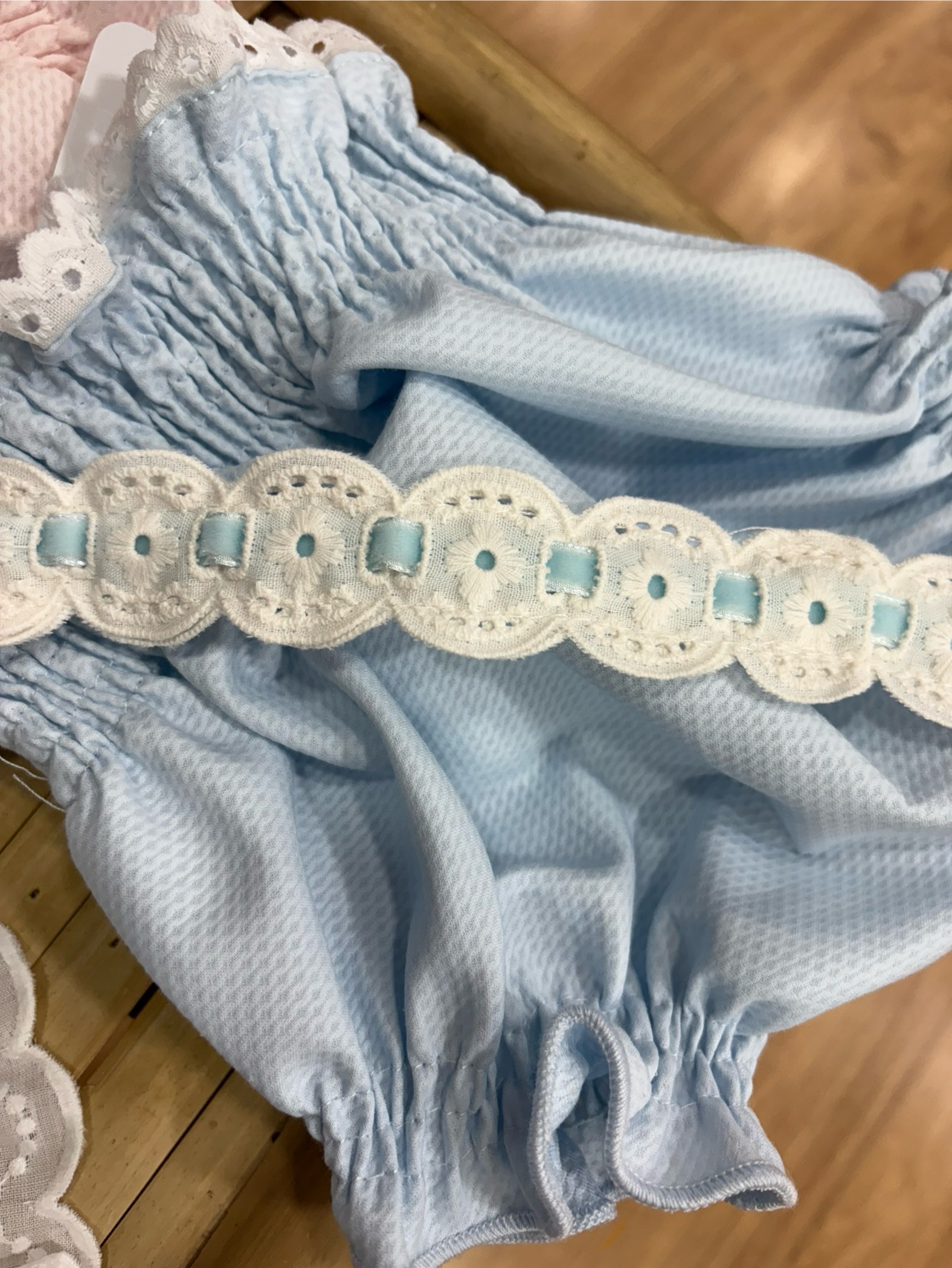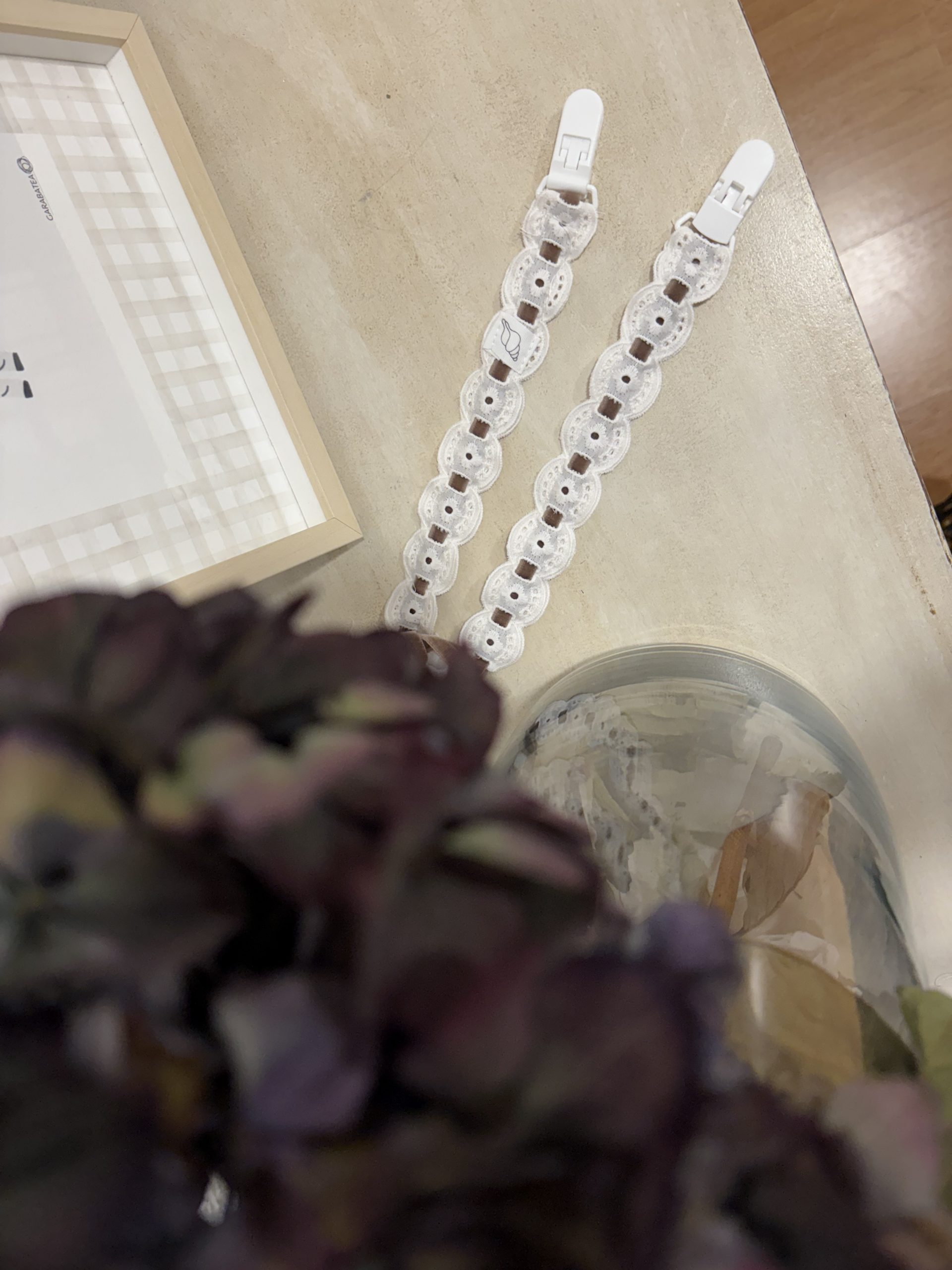 Chupetero de tira bordada blanco roto, rosa bebe, celeste y marrón.