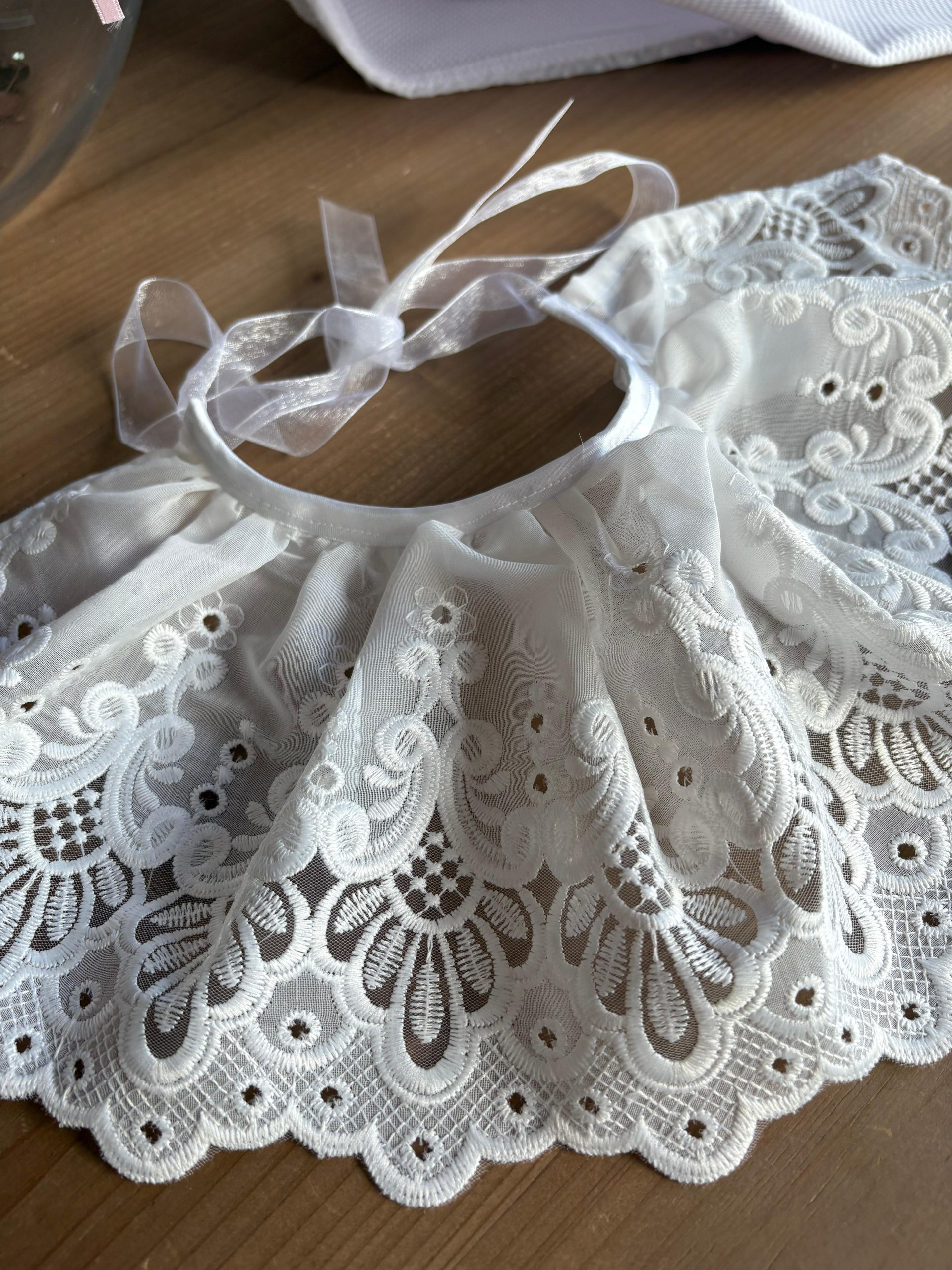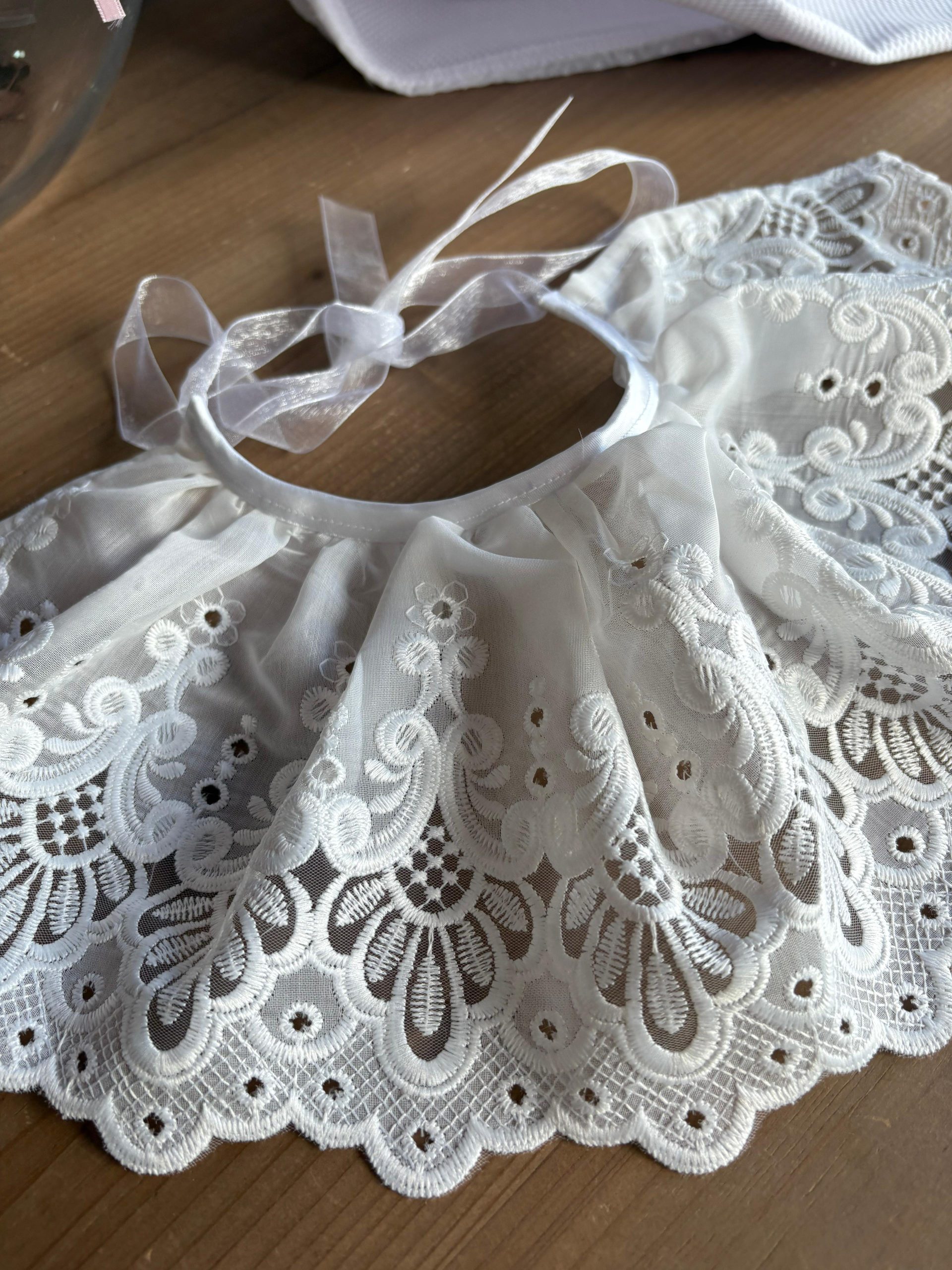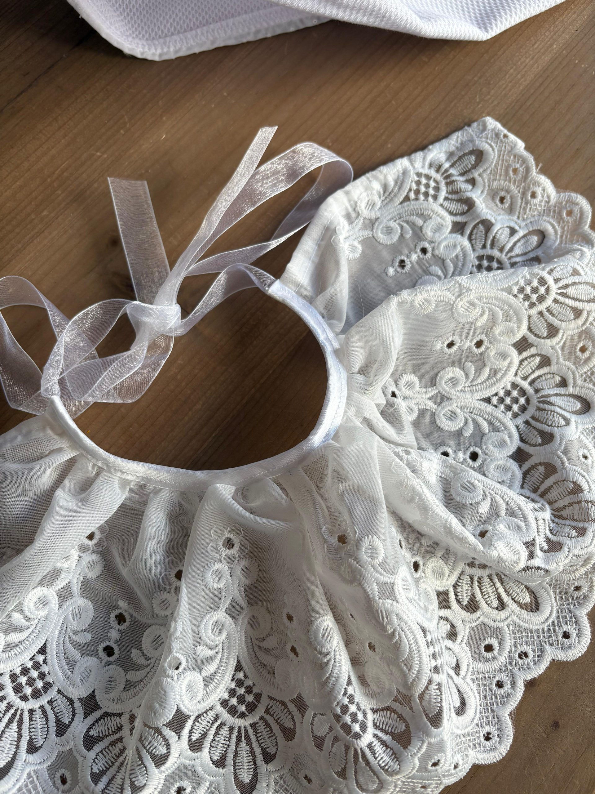 Cuello bordado efecto capita para decorar todos los looks de tu bebé. Lo puedes utilizar desde recién nacido hasta los 2 añitos.