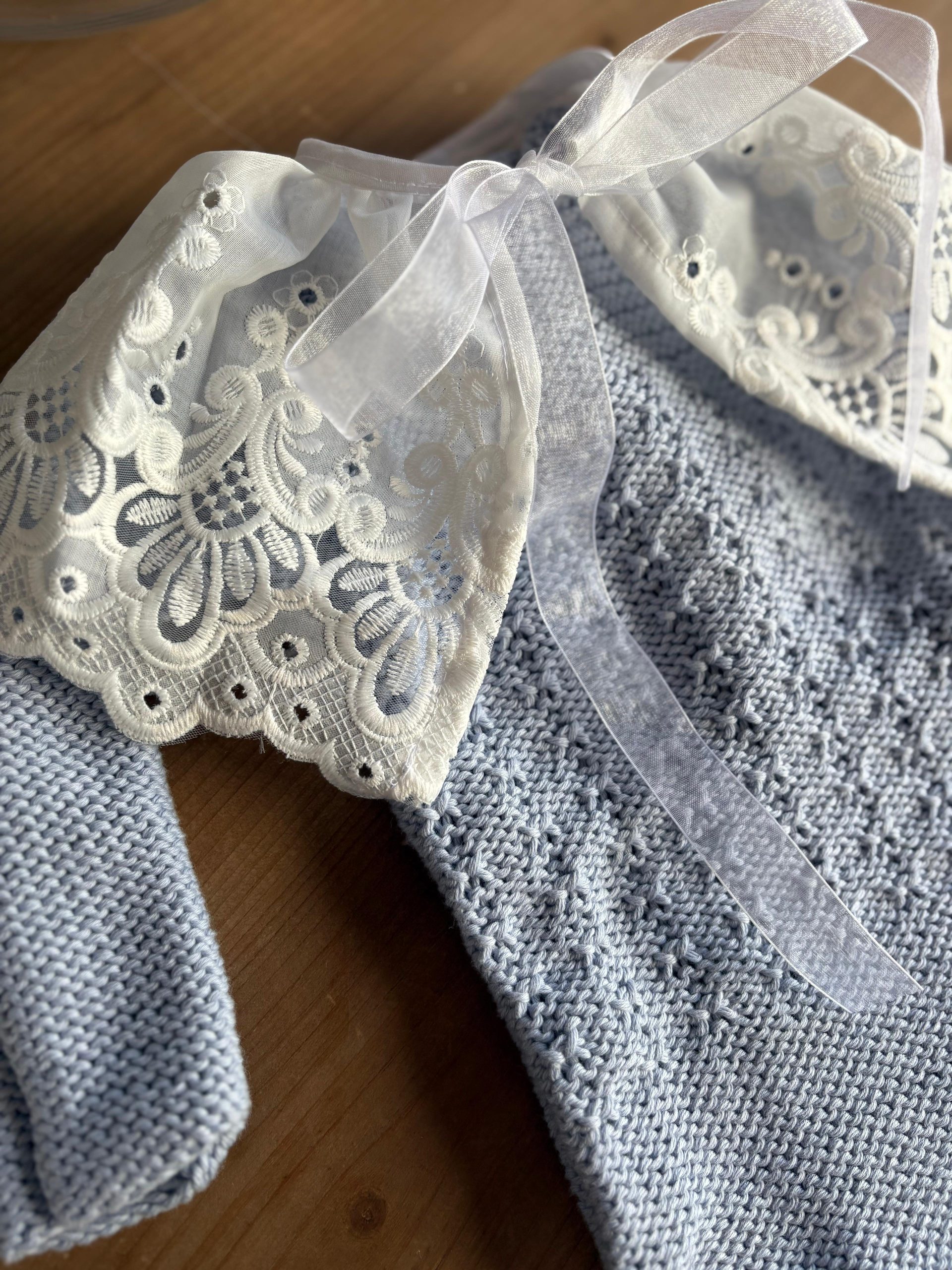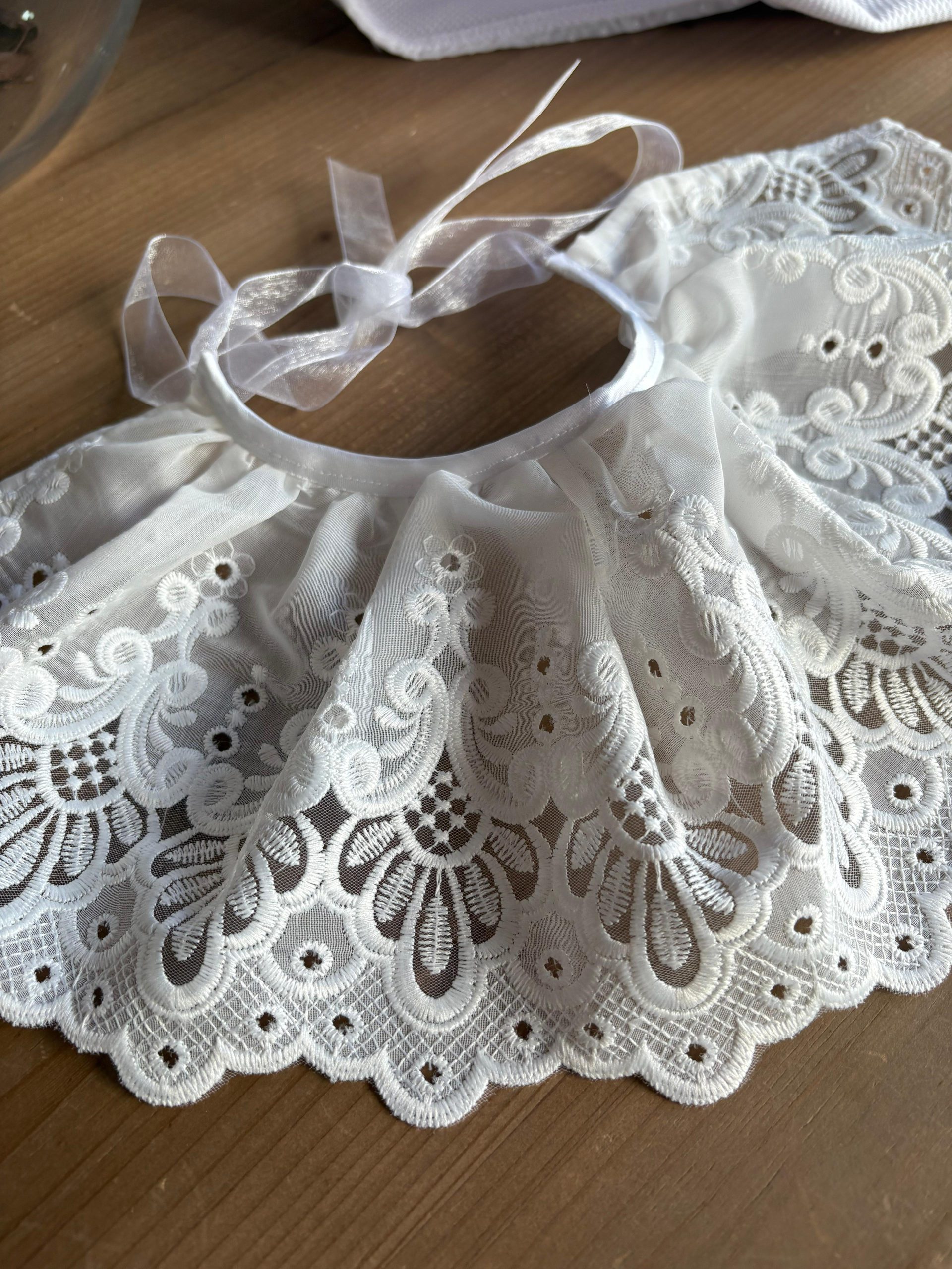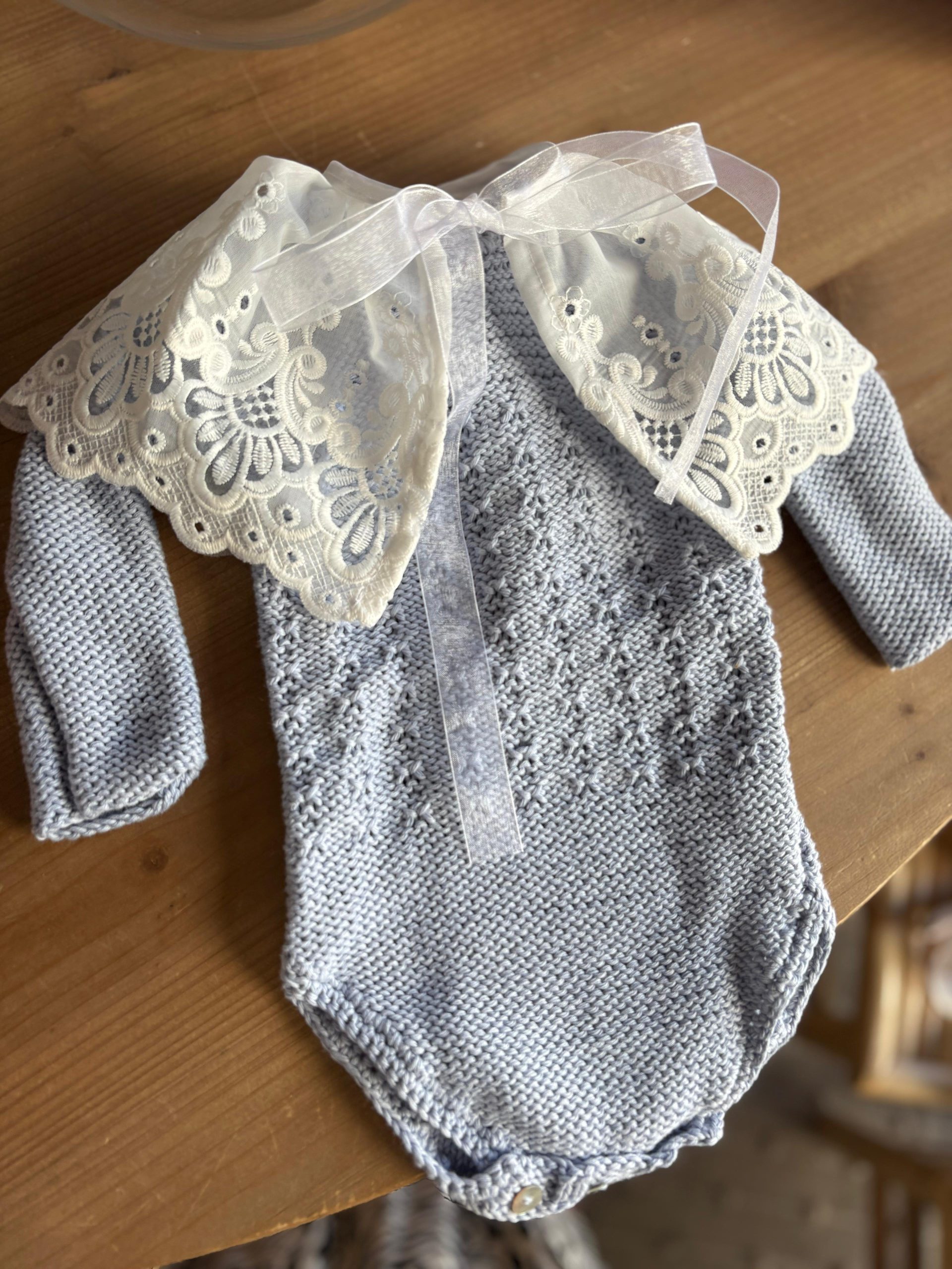 Cuello bordado efecto capita para decorar todos los looks de tu bebé. Lo puedes utilizar desde recién nacido hasta los 2 añitos.