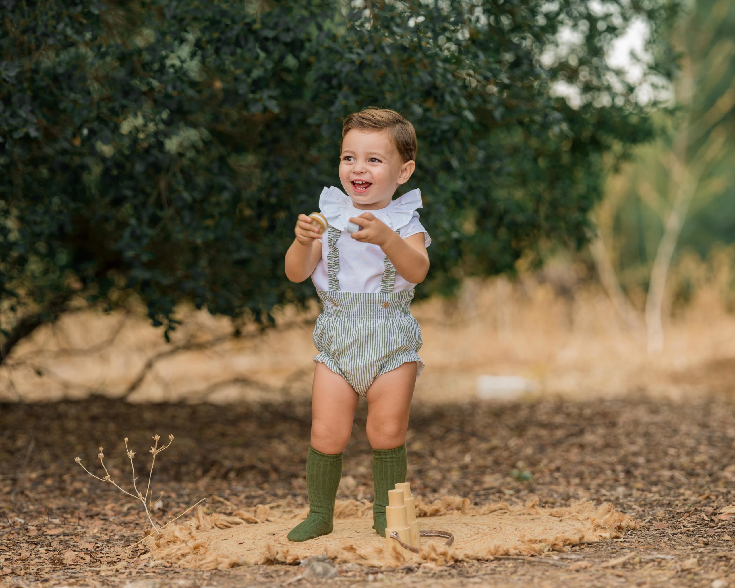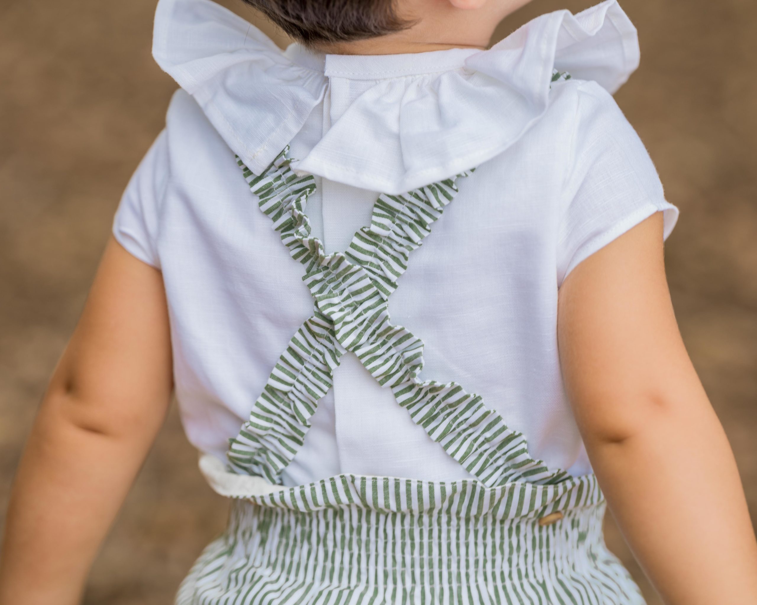 Culetín tirantes extraíbles con botones en tejido de rayas verde lima.