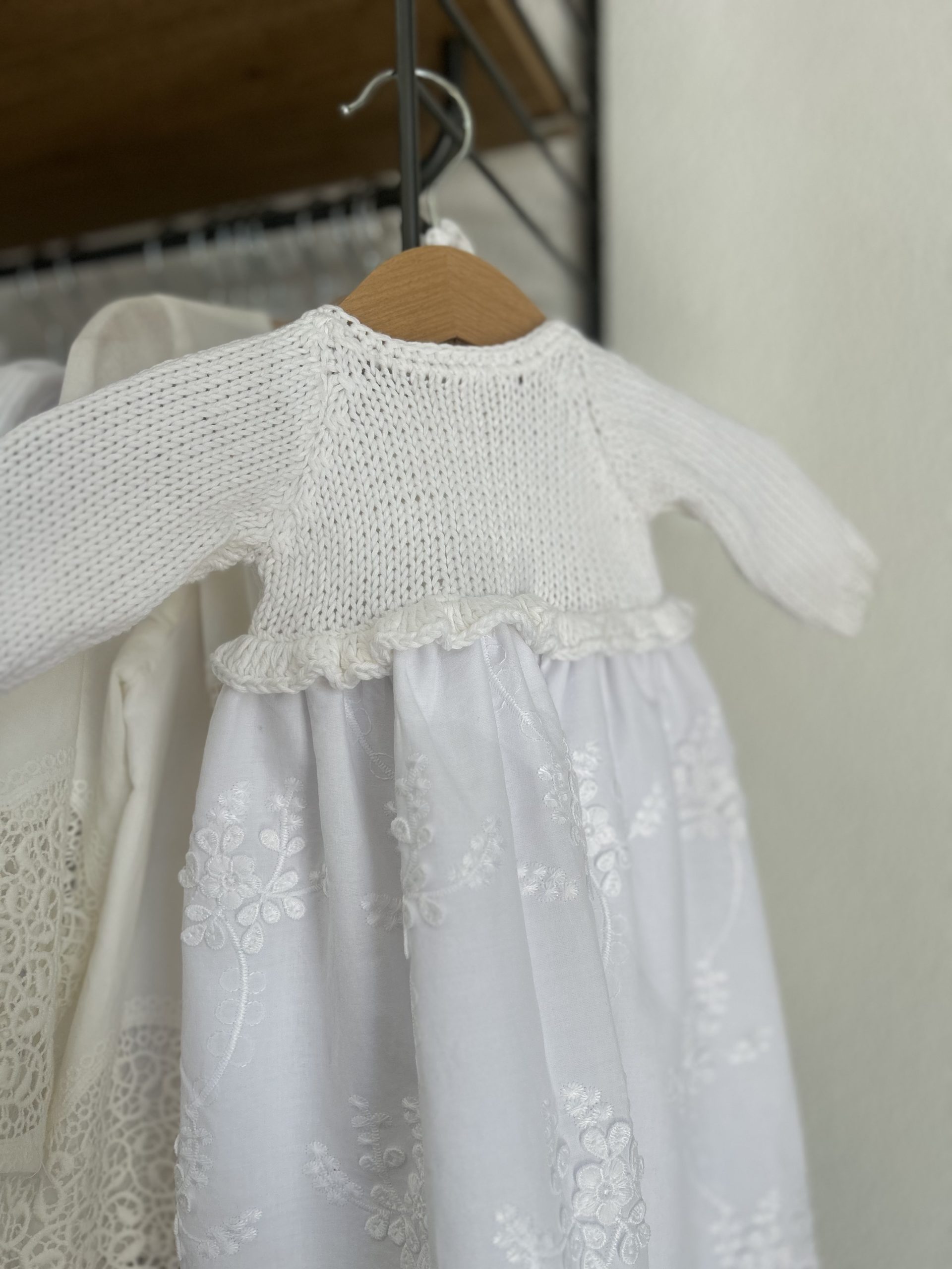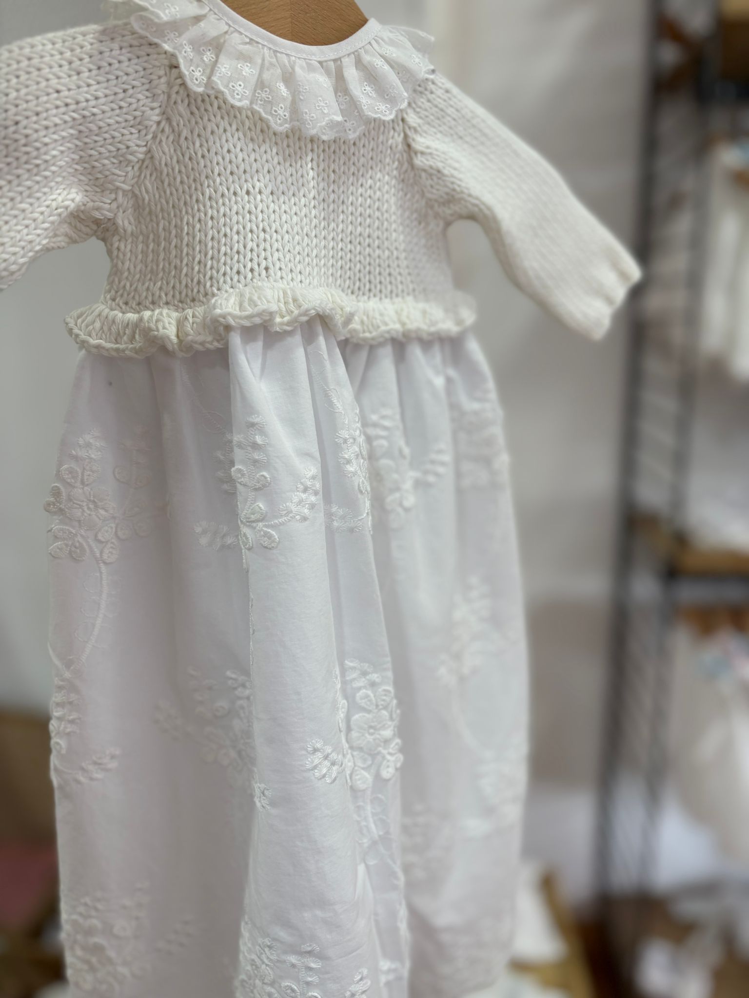 Faldón de punto con manga larga. Con el cuerpo de una tela muy especial.