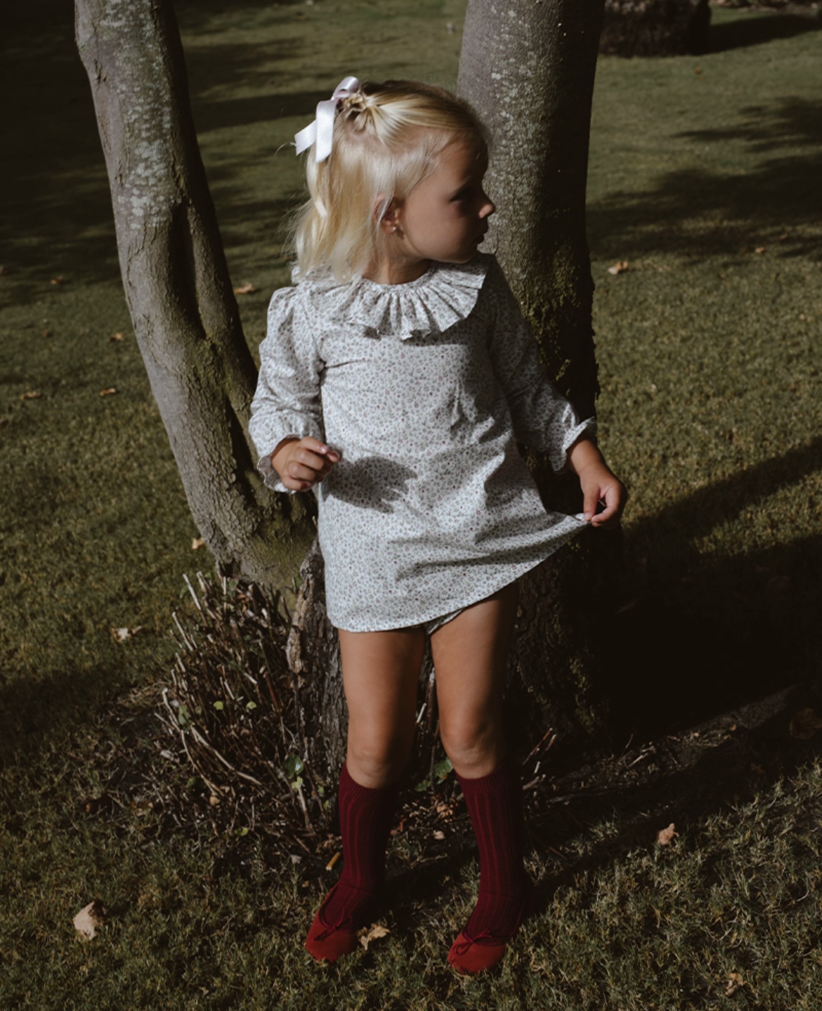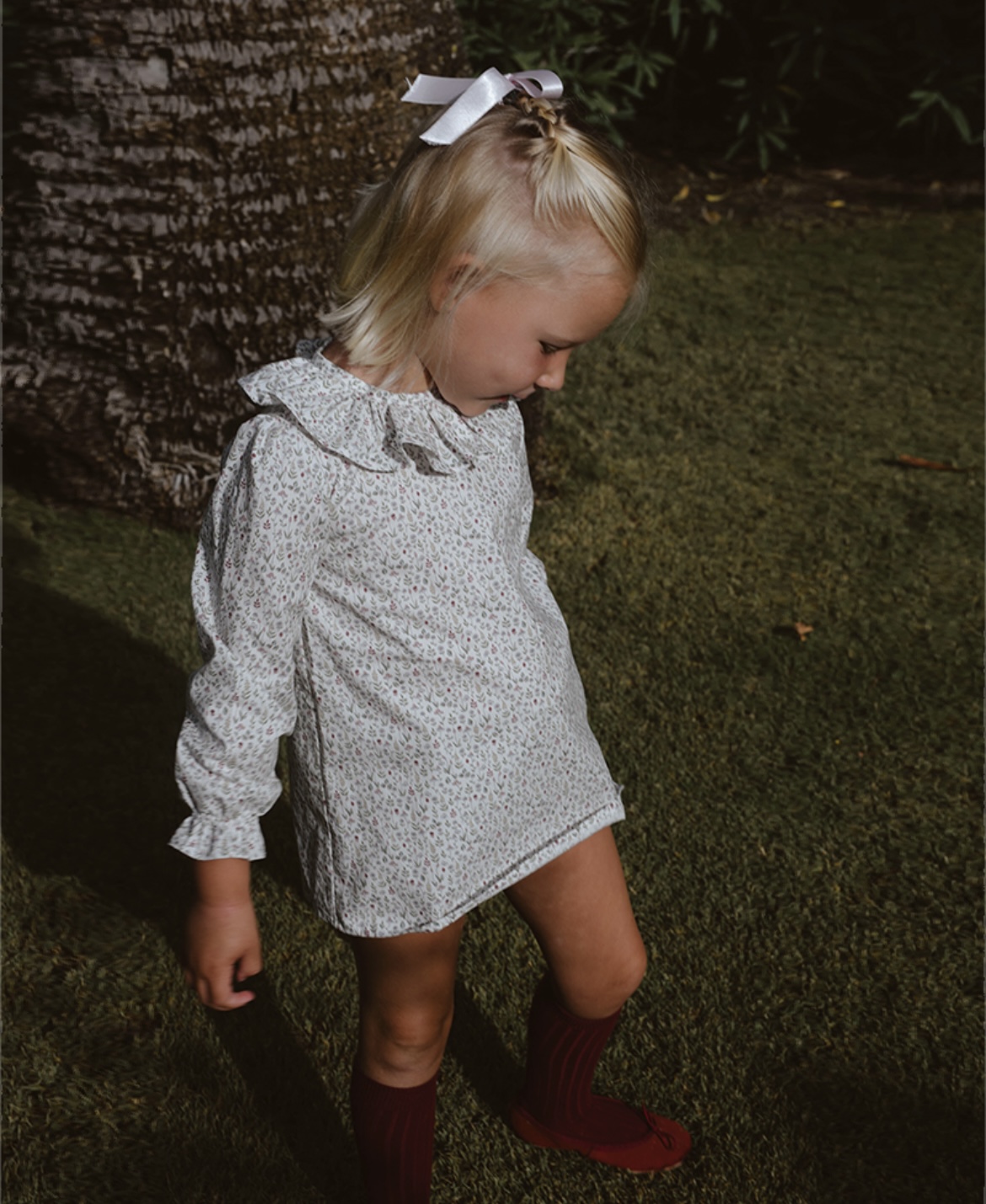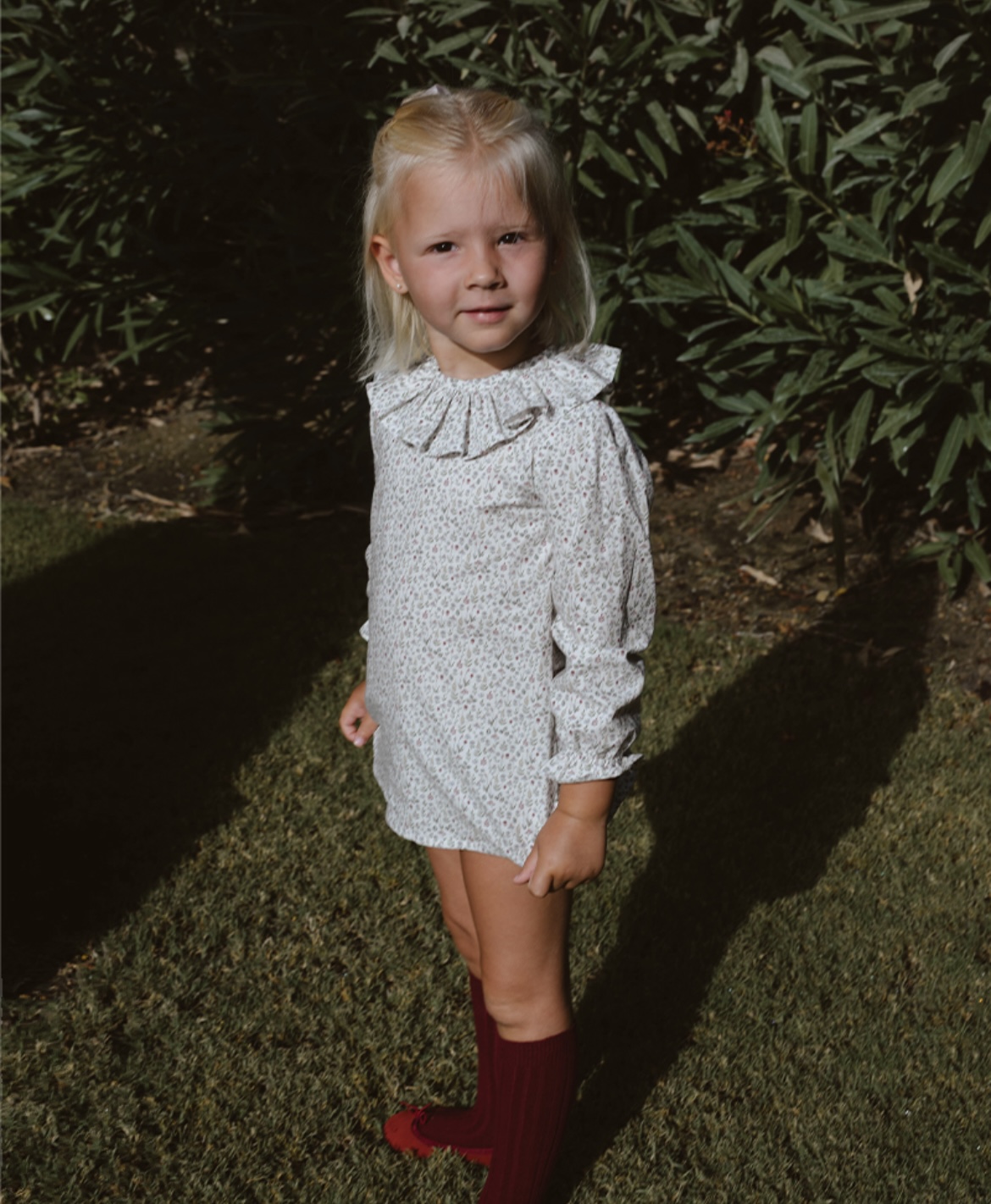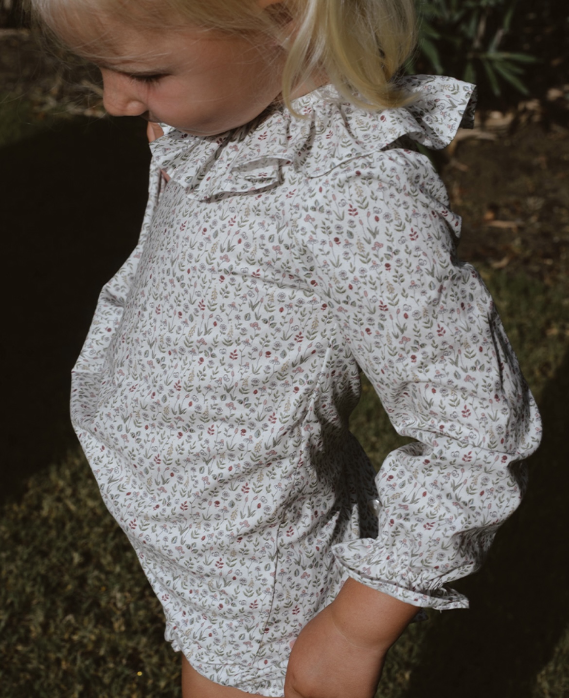 Lleva un volante en cuello.