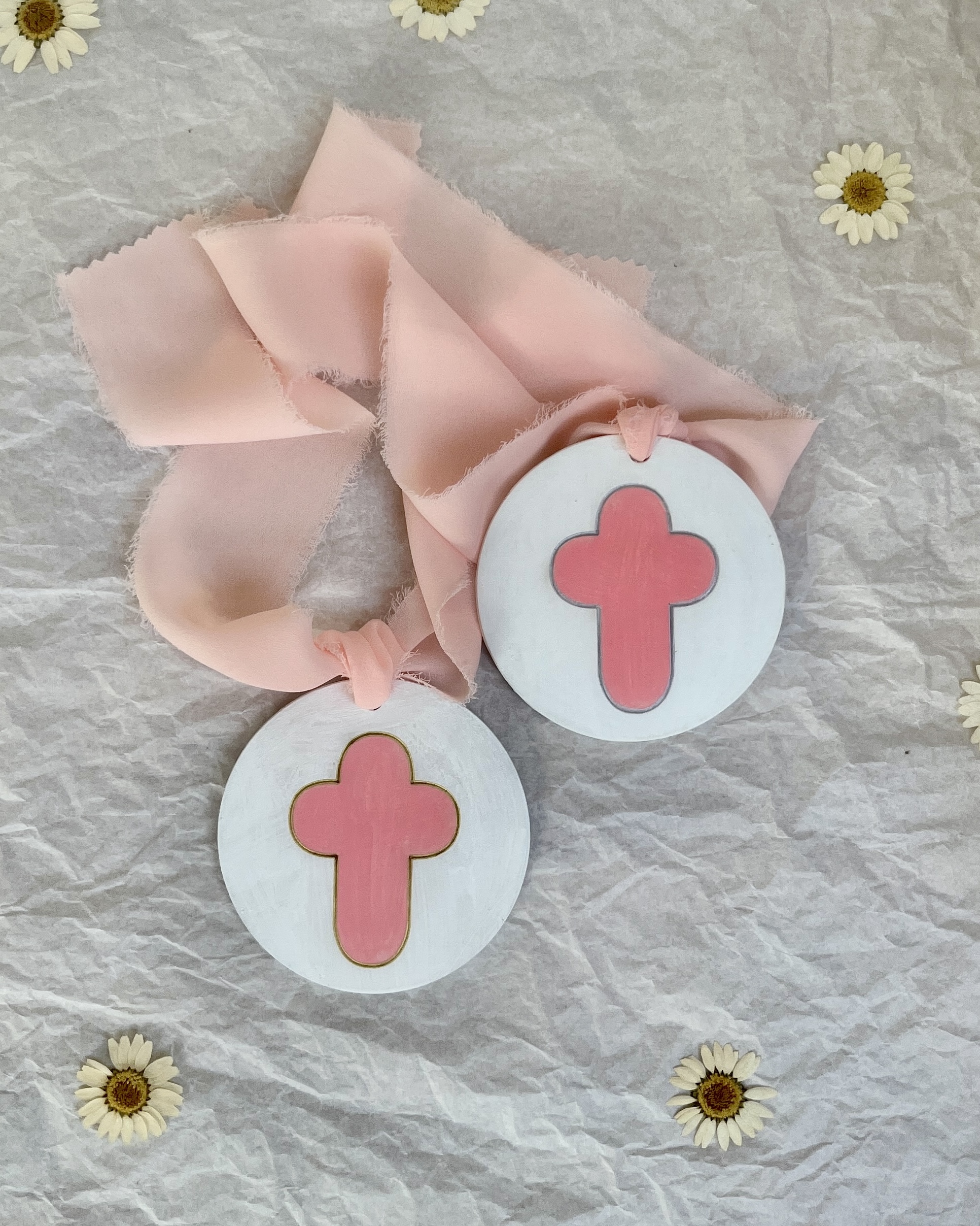 El medallón incluye un lazo de seda del mismo color, que añade un toque elegante y suave al conjunto. Este lazo no solo decora, sino que también facilita colocarlo en la cuna, el carro o cualquier rincón del dormitorio del bebé. Gracias a su diseño ligero, puedes moverlo con facilidad y adaptarlo a diferentes usos según el momento.