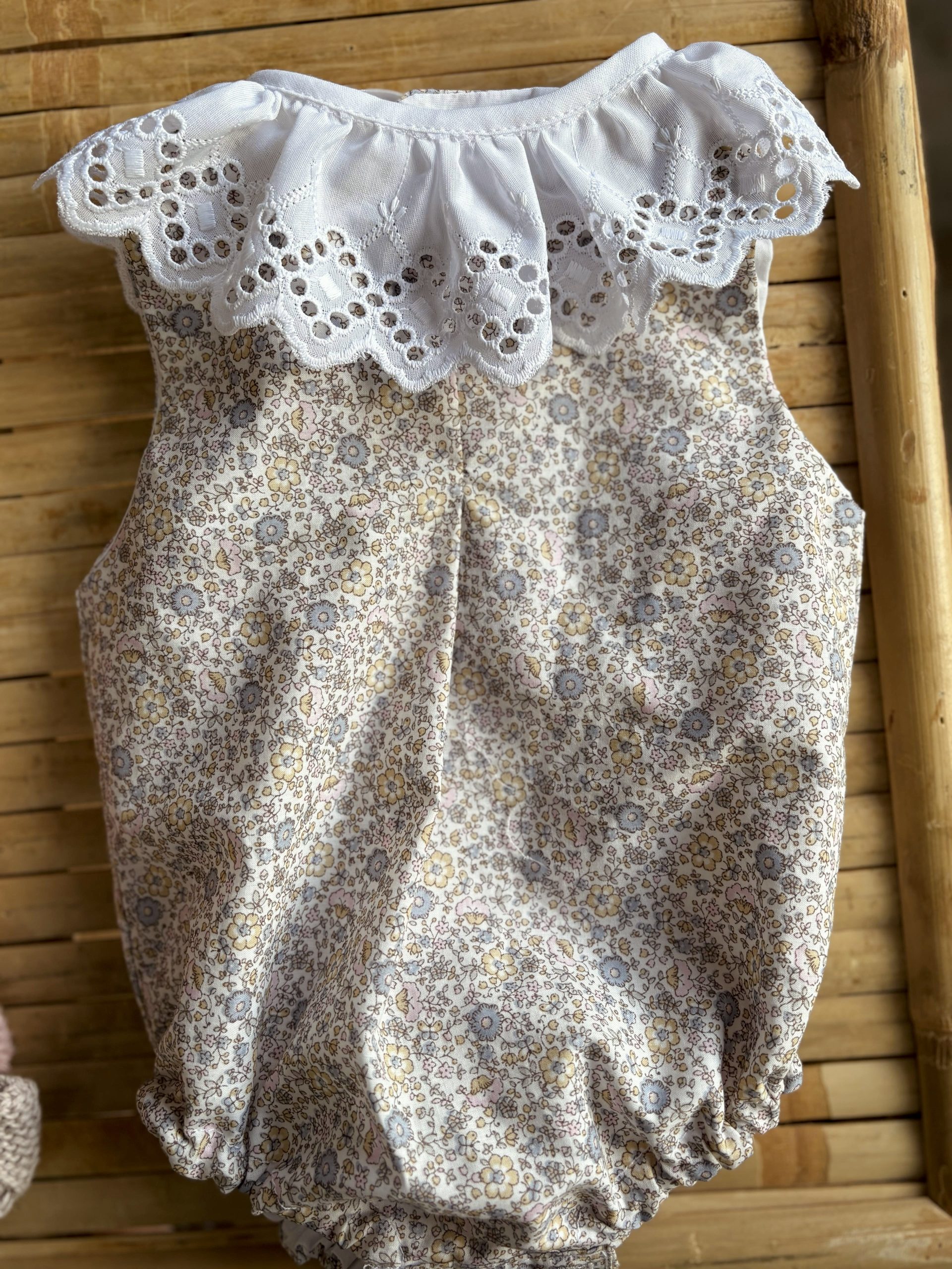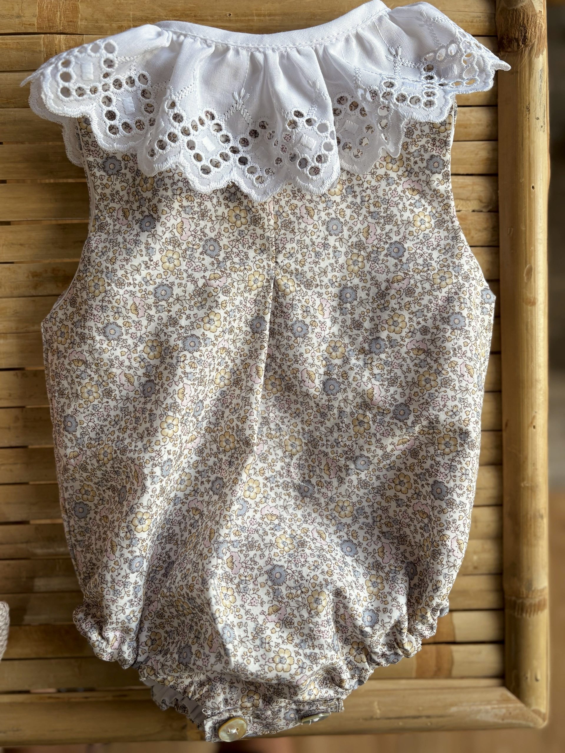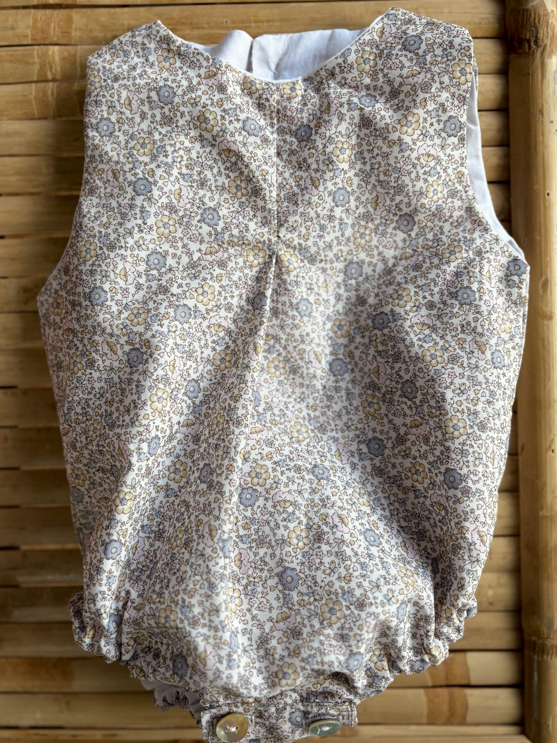 Pelele tela de flores en rosa, forrado y con botones en nácar.