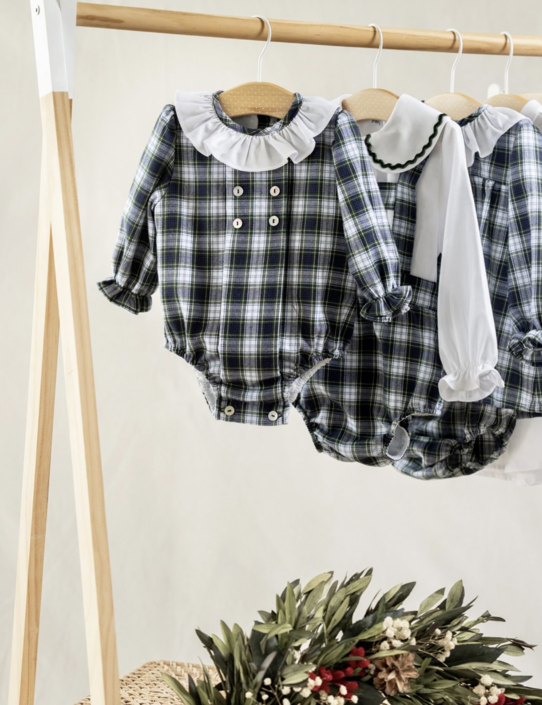 Pelele unisex confeccionado en viyela tartán y forrado en algodón 100%.