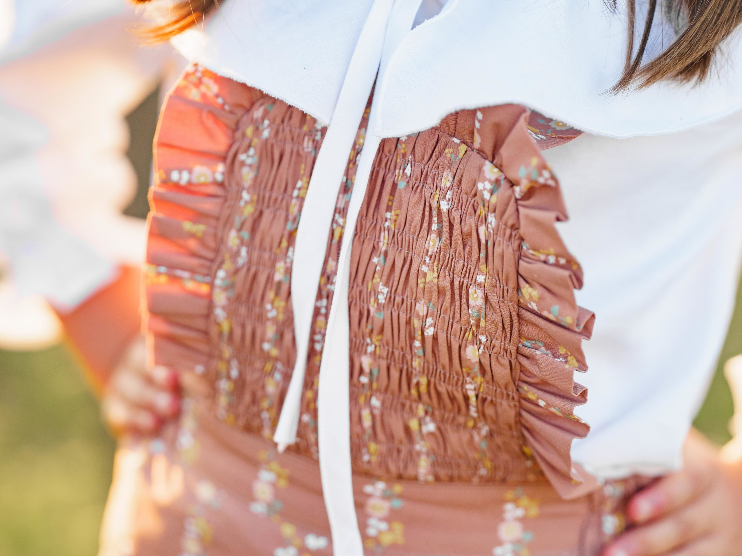 Peto midi de flores en línea en tejido EXCLUSIVO para MIJI, con pecherín fruncido y acabado en volante ideal para este otoño que sienta a nuestras niñas súper ideal.