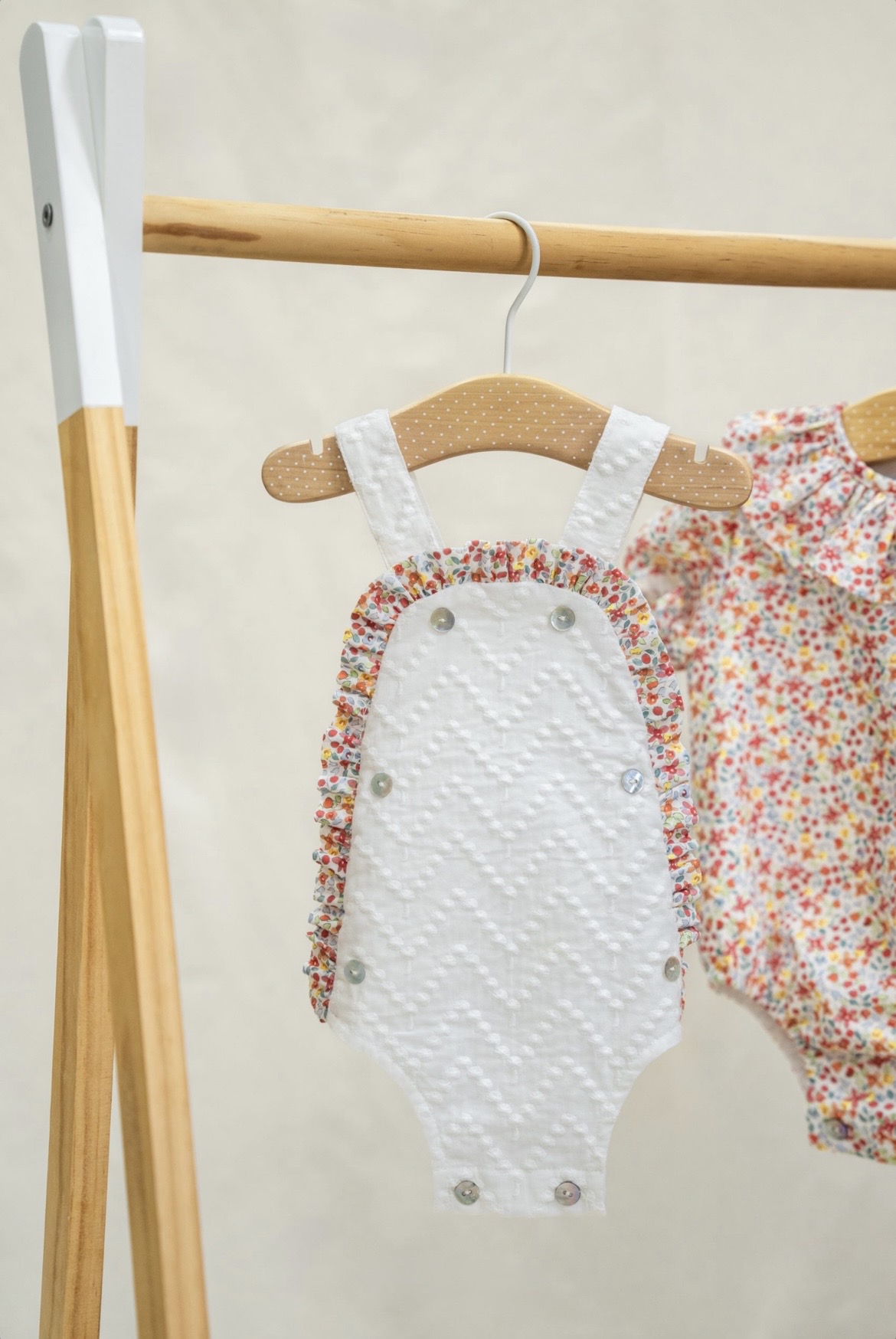 El muslo lleva gomas muy finitas que no aprietan a los bebés y lleva botones de nácar en la entrepierna para facilitar el cambio de pañal.